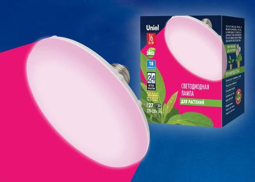 Лампа LED для растений Uniel LED-U150-16W-SPSB-E27-FR PLP30WH UFO матовая. для рассады и цветения