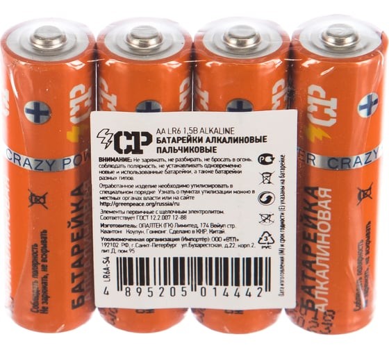 Батарейки AA (LR06) 4шт в блистере, щелочные 1.5V, высокой ёмкости BY -917-112