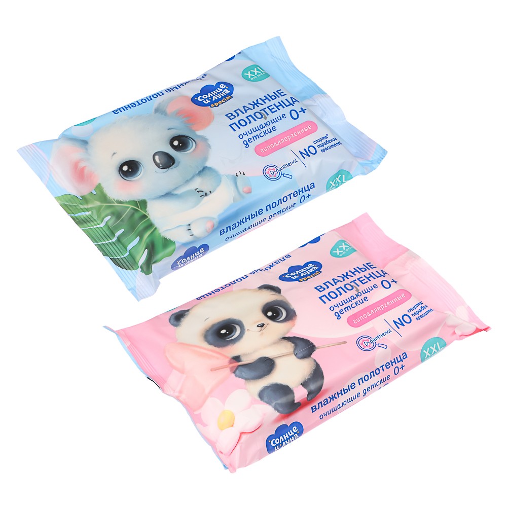 Влажные полотенца Солнце и луна детские 0+, очищающие, 42шт -914-016