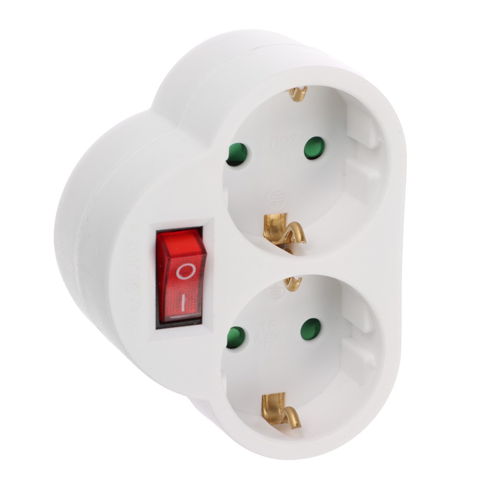 Разветвитель 2 х гнезда, евро, с заземлением, 16А, 3500Вт, с выключателем, белый FORZA -907-148
