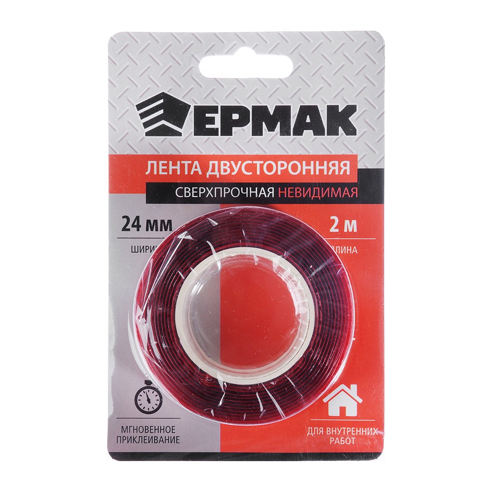 Лента двусторонняя сверхпрочная невидимая 24мм х 2м ЕРМАК -472-044