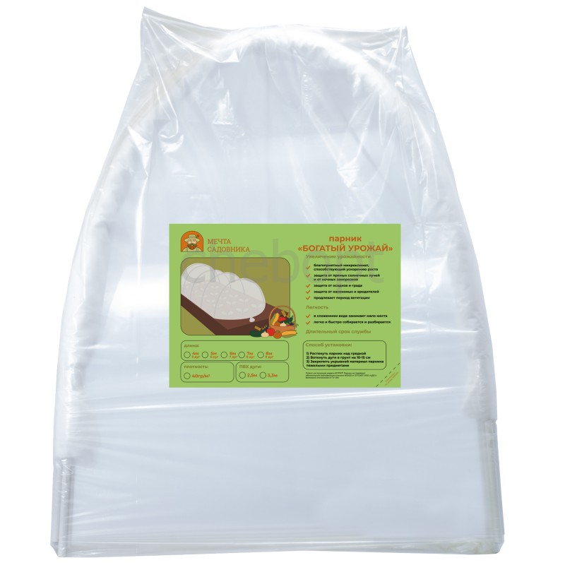 Парник 'Богатый урожай' длина 6 м (дуги 2,5м 7шт, укрывной материал 8м, ширина 2,1м, плот 40г-м2)