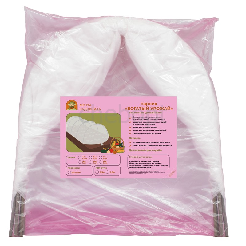 Парник 'Богатый урожай' длина 4 м (дуги 2,5м 4шт, укрывной материал 6м, ширина 2,1м, плот 60г-м2)