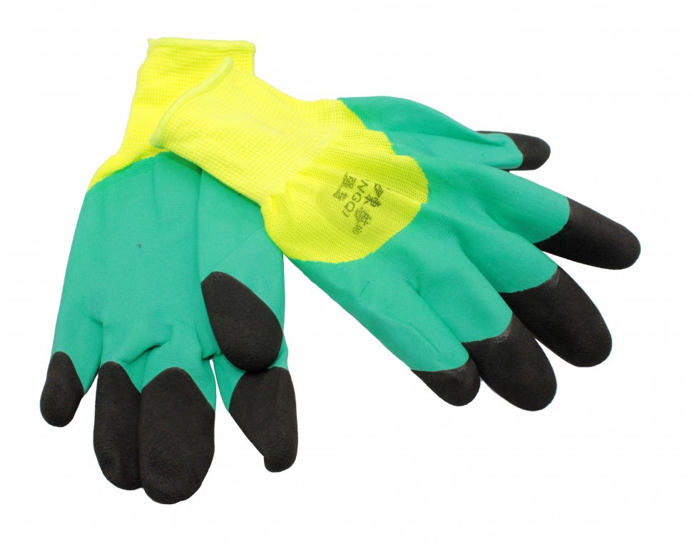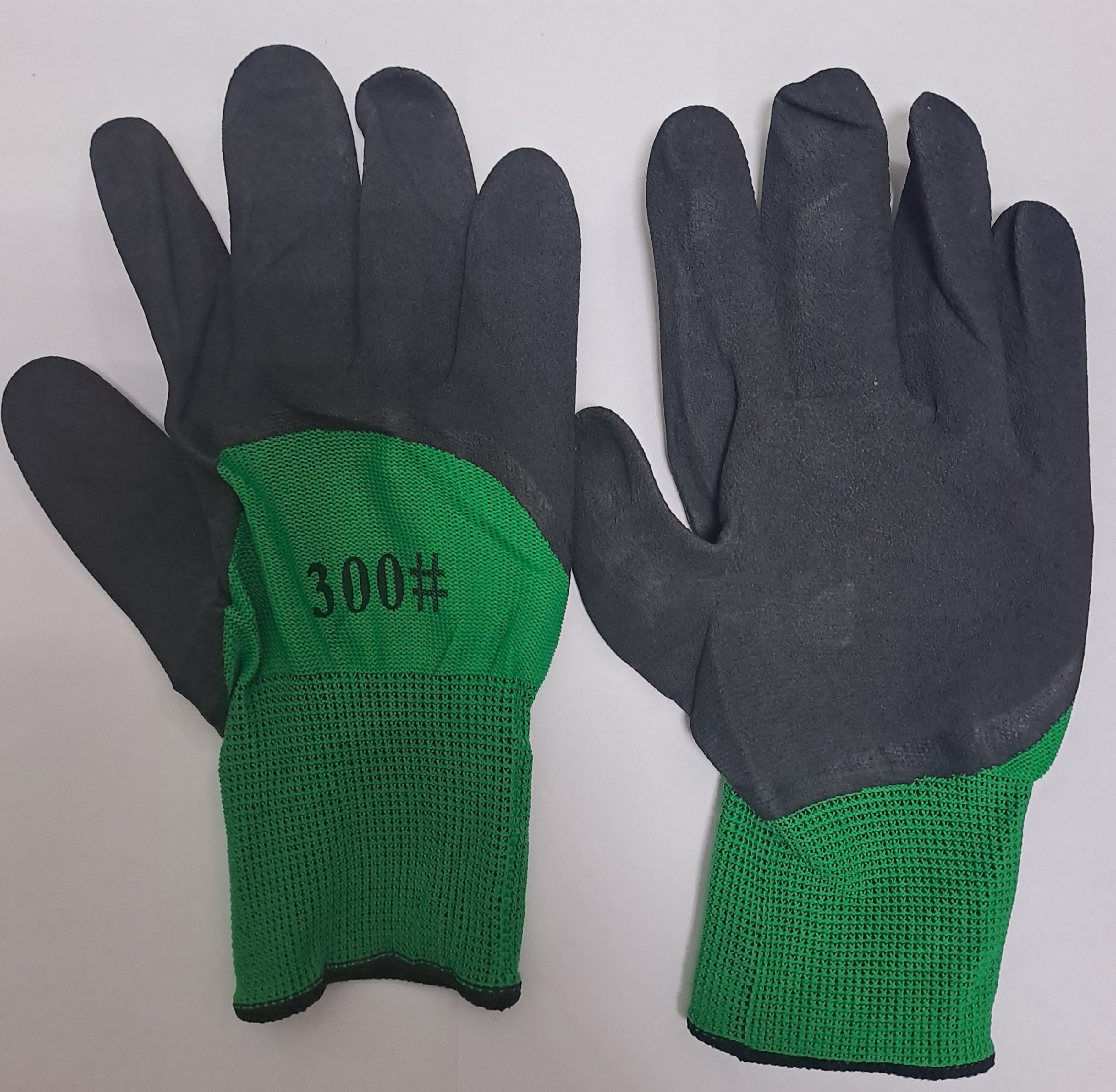 Перчатки BS-03, зелёные с обливом и с чёрными ладонями и пальц. РХ, цена за 1 спайку (12*60-70)