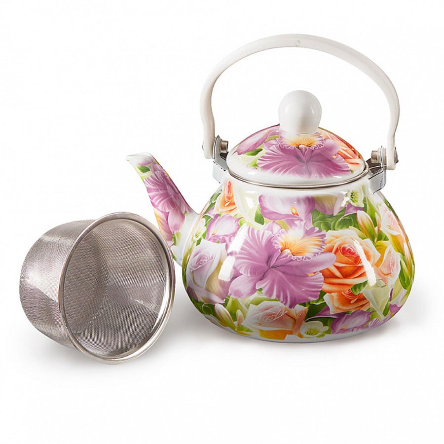 Чайник эмалированный 1,3л, с фильтром из нерж. стали 'Орхидея' EM-131X1-8