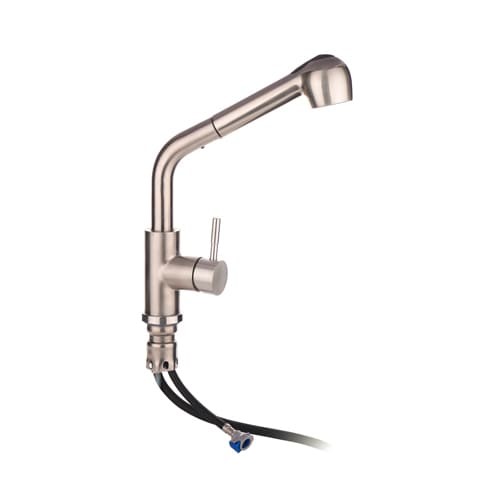 Смеситель для кухни Аквамарин однорычаж. с выдв. изл, карт. 35мм, гайка, латунь, сатин RAIN -561-291