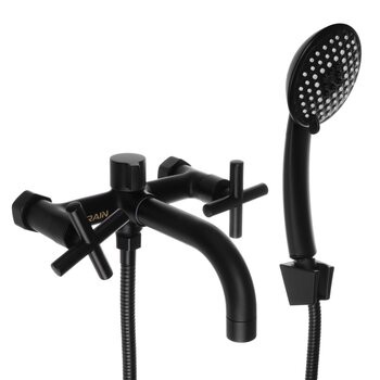 Смеситель для ванны Кристал, корот. излив, душ. набор, кран-буксы 1-2, латунь, черный RAIN -561-019