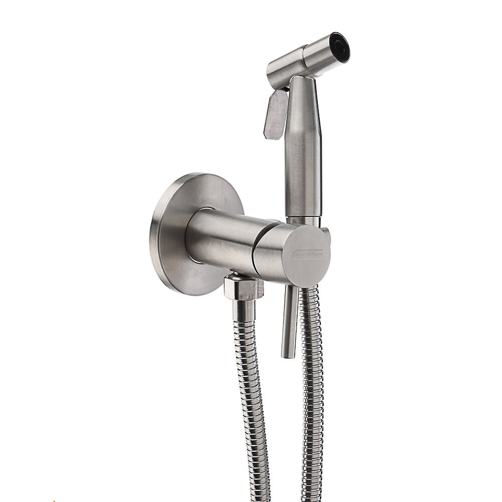 Смеситель для биде с гигиенич. душем настенный, картридж 35мм, нерж. сталь, SS03-R132 -567-043