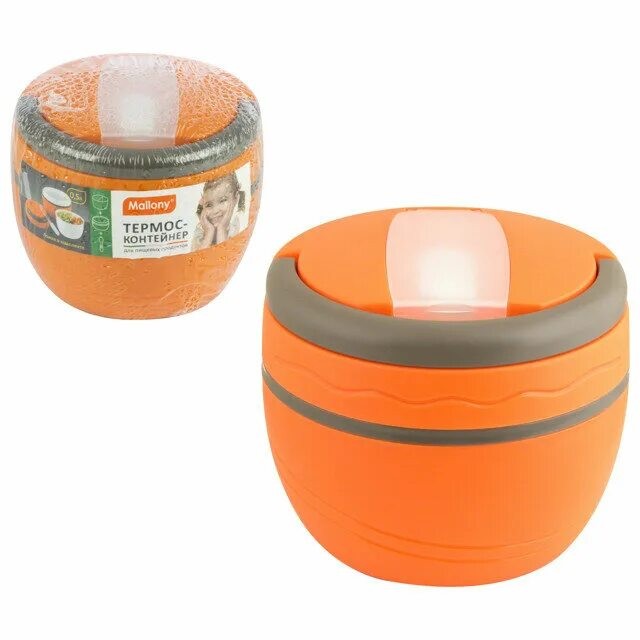 Термос для еды 500мл MALLONY пласт. корпус, широкое горло с2мя отделениями, ложка, арт.001722