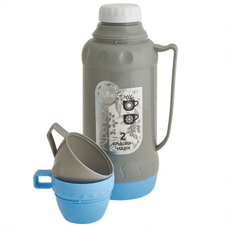 Термос 1,8л со стеклянной колбой ALPENKOK AK-10107S 2 крышки-чашки, серый
