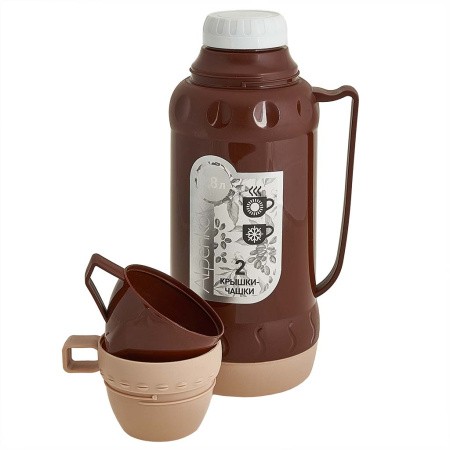 Термос 1,8л со стеклянной колбой ALPENKOK AK-10108S 2 крышки-чашки, коричневый