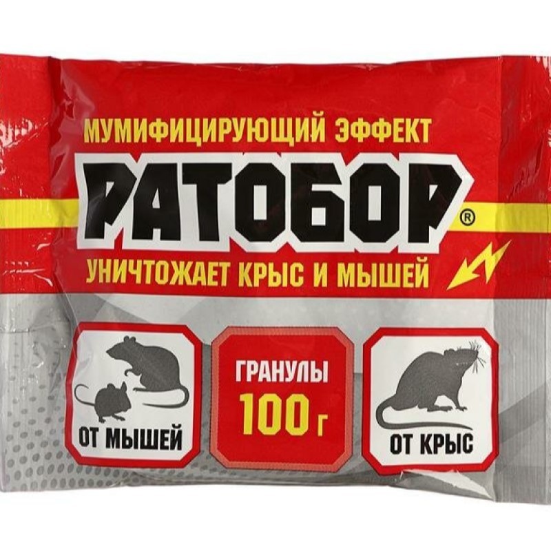 Отрава РАТОБОР гранулы 100г для мышей и крыс -пакет ВХ (50)