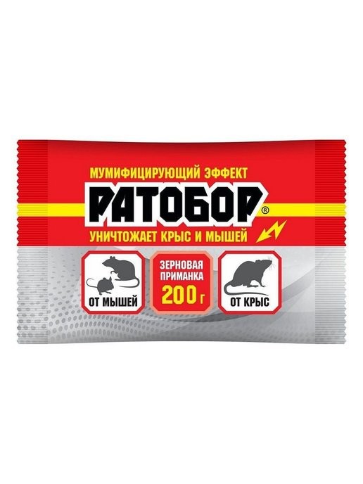 Отрава РАТОБОР зерно 200г ЭКСТРА пакет для мышей и крыс ВХ (30)