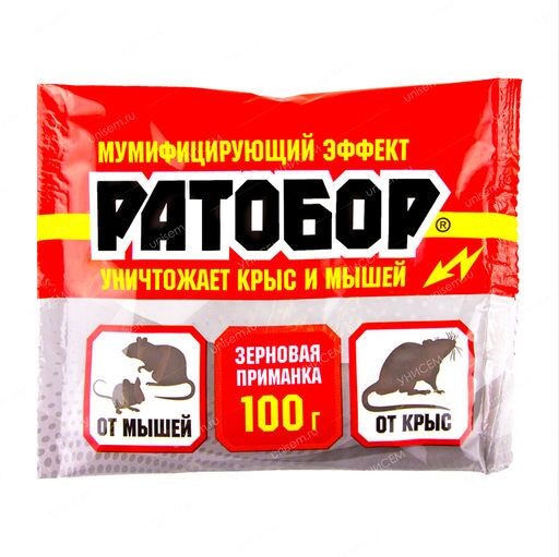 Отрава РАТОБОР зерно 100г НОВЫЙ для мышей и крыс -пакет ВХ (50)